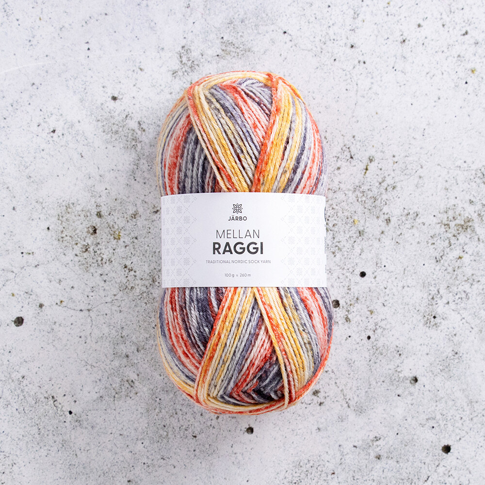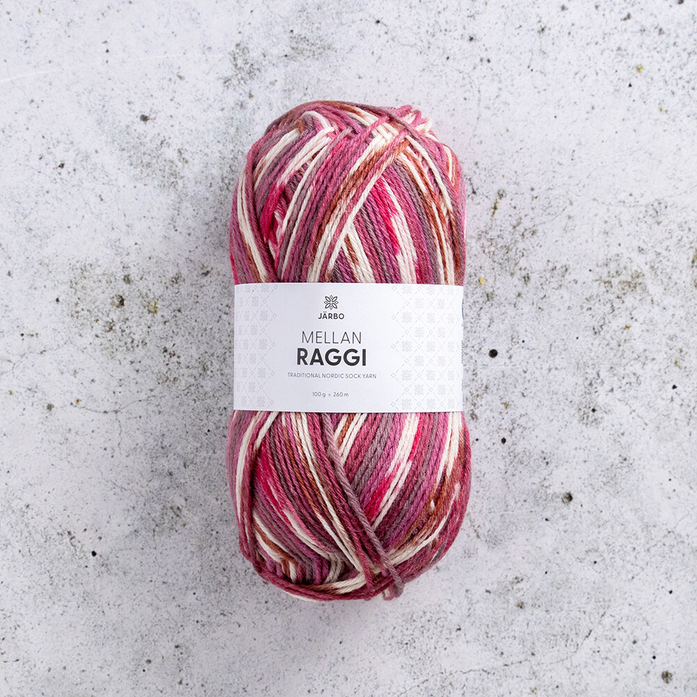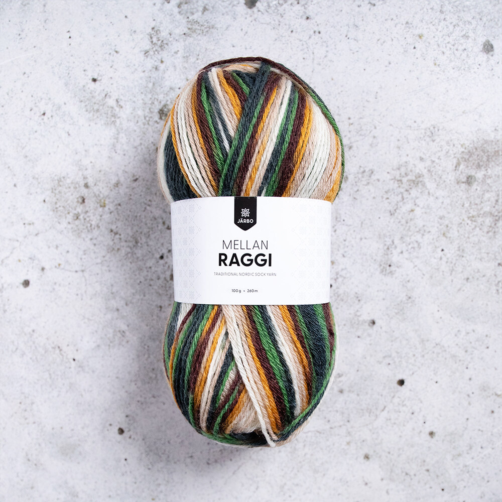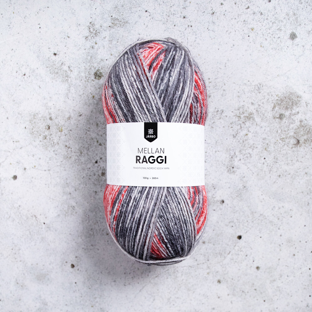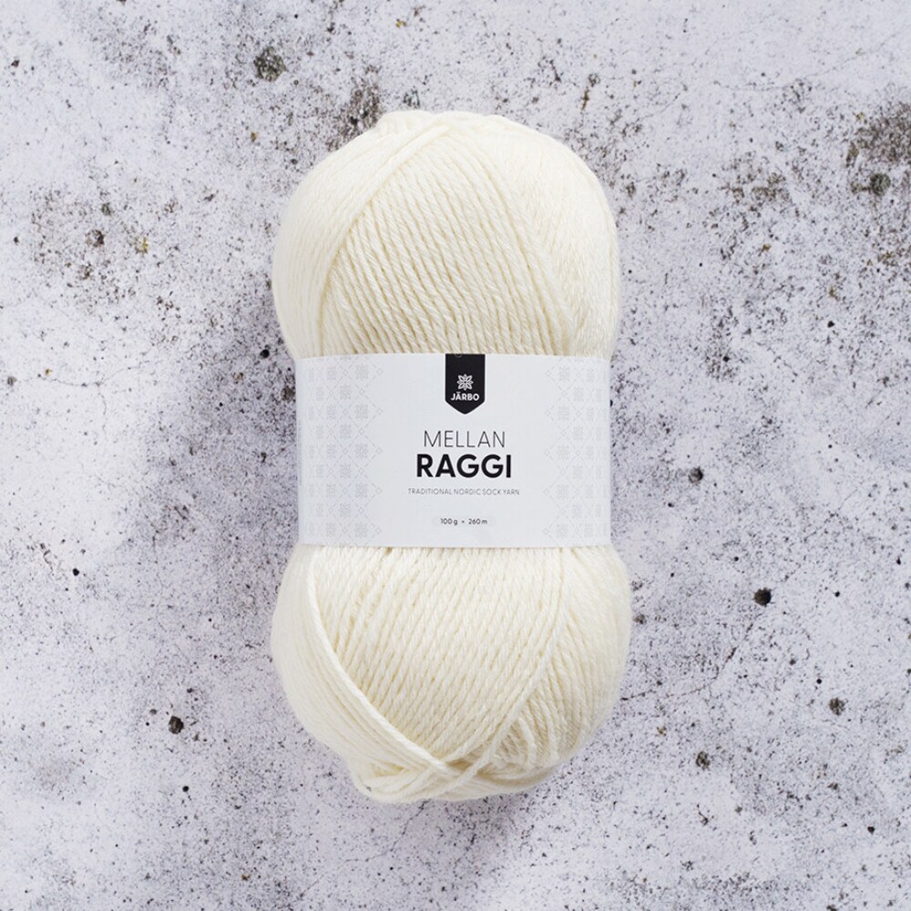 Järbo Mellanraggi 100g to wytrzymała włóczka na skarpety, wykonana z klasycznej mieszanki wełny superwash i poliamidu. Ma średnią grubość i jest szczególnie polecana do projektów wymagających trwałości, takich jak skarpety.