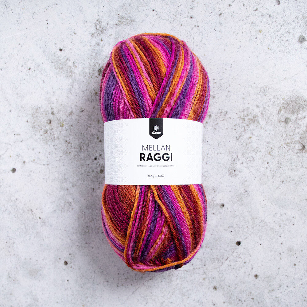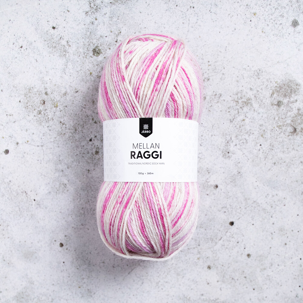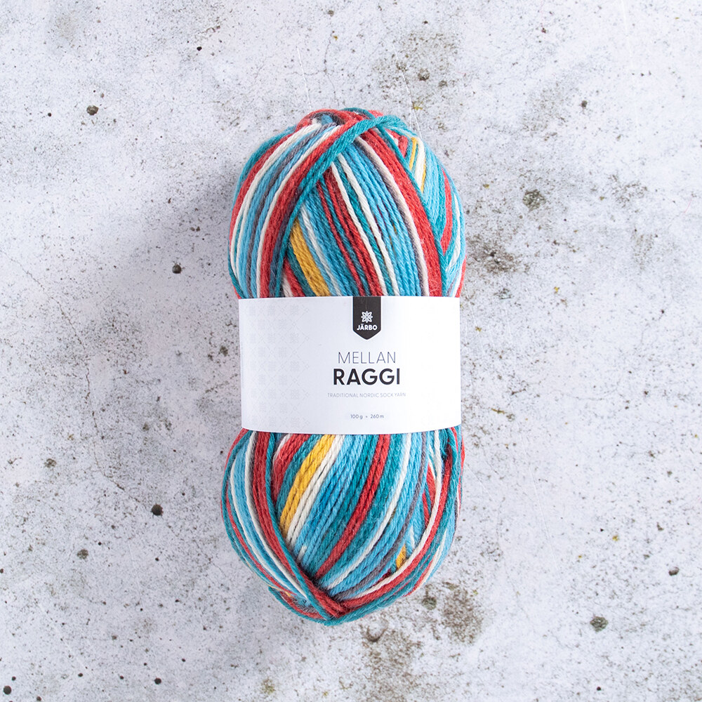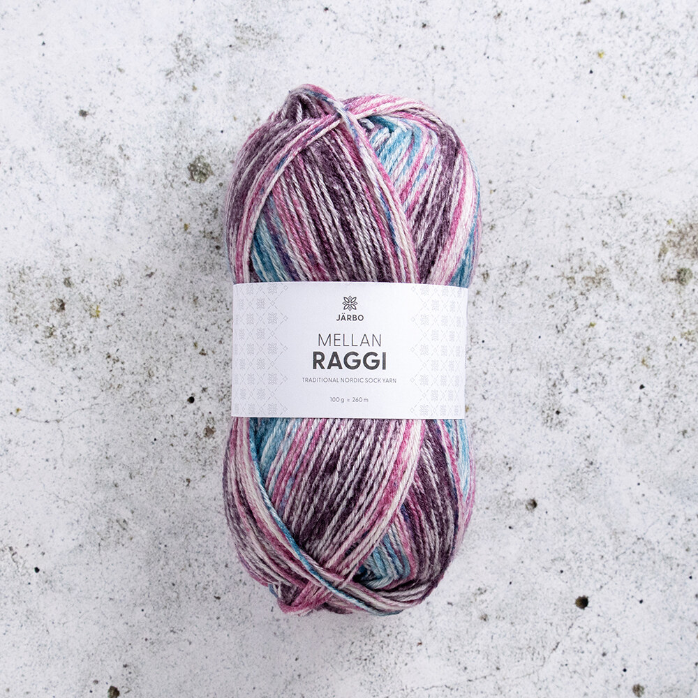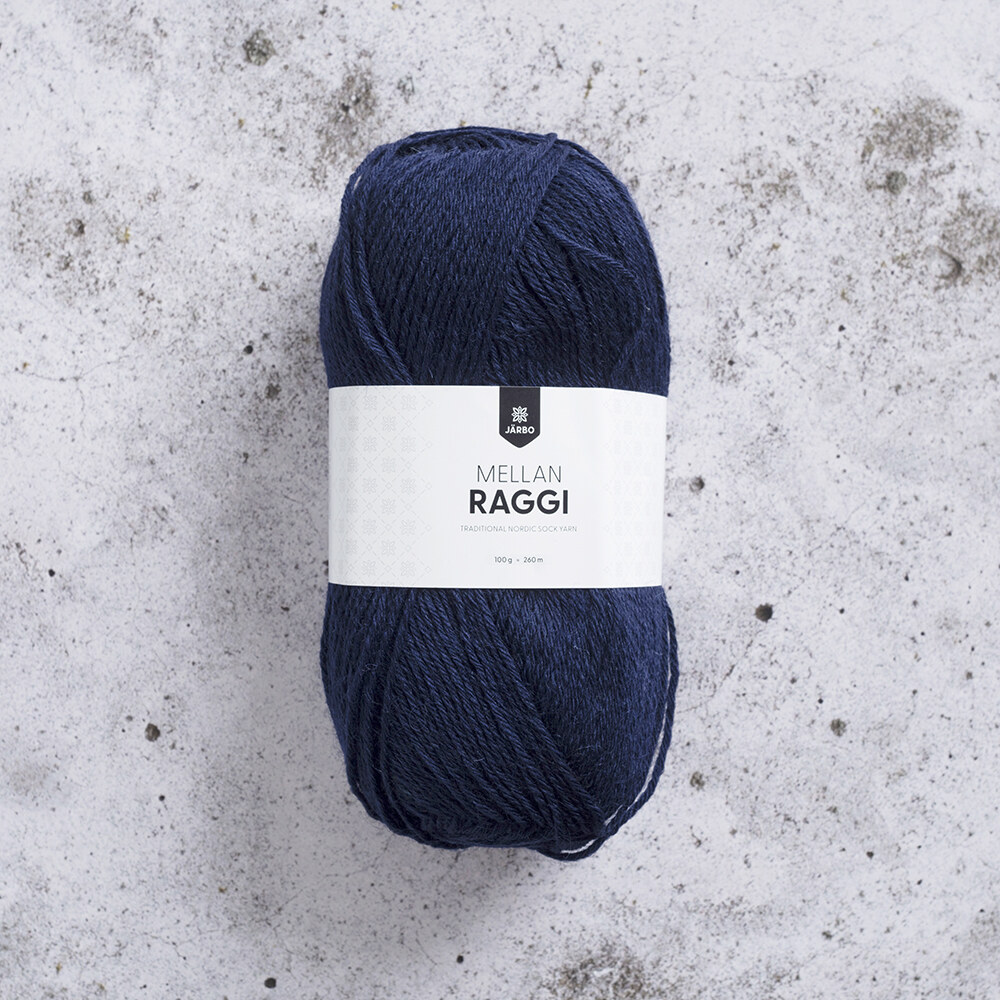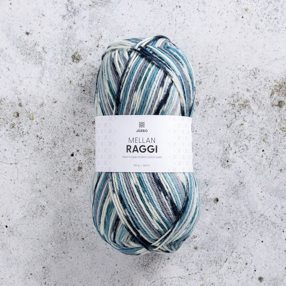 Järbo Mellanraggi 100g to wytrzymała włóczka na skarpety, wykonana z klasycznej mieszanki wełny superwash i poliamidu. Ma średnią grubość i jest szczególnie polecana do projektów wymagających trwałości, takich jak skarpety.