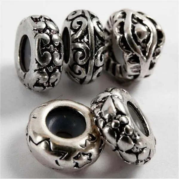 Posrebrzane metalowe ogniwa z pięknymi wzorami.
