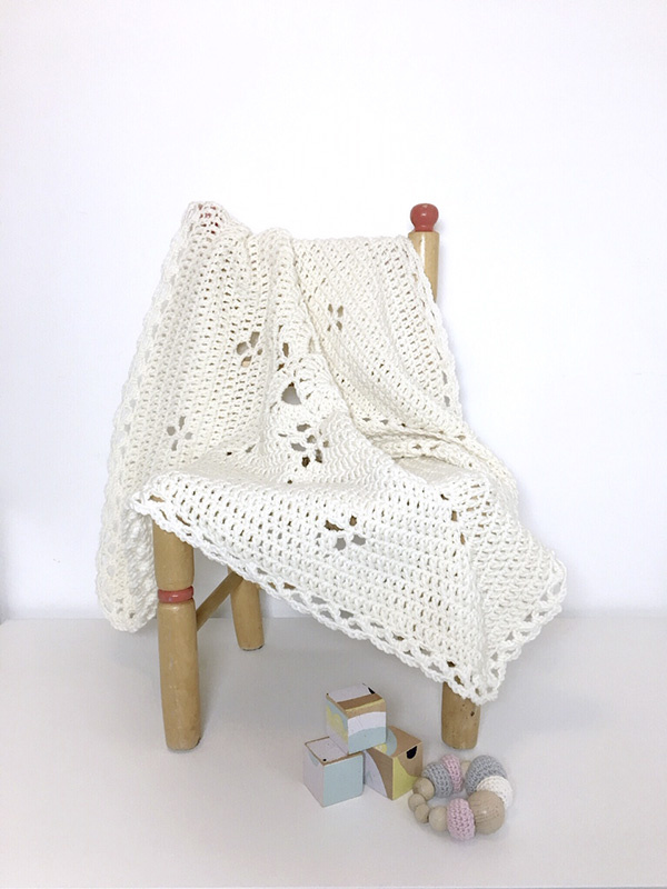Na szydełku wykonaj piękny kocyk niemowlęcy Snowflake, z włóczki DROPS Big Merino .