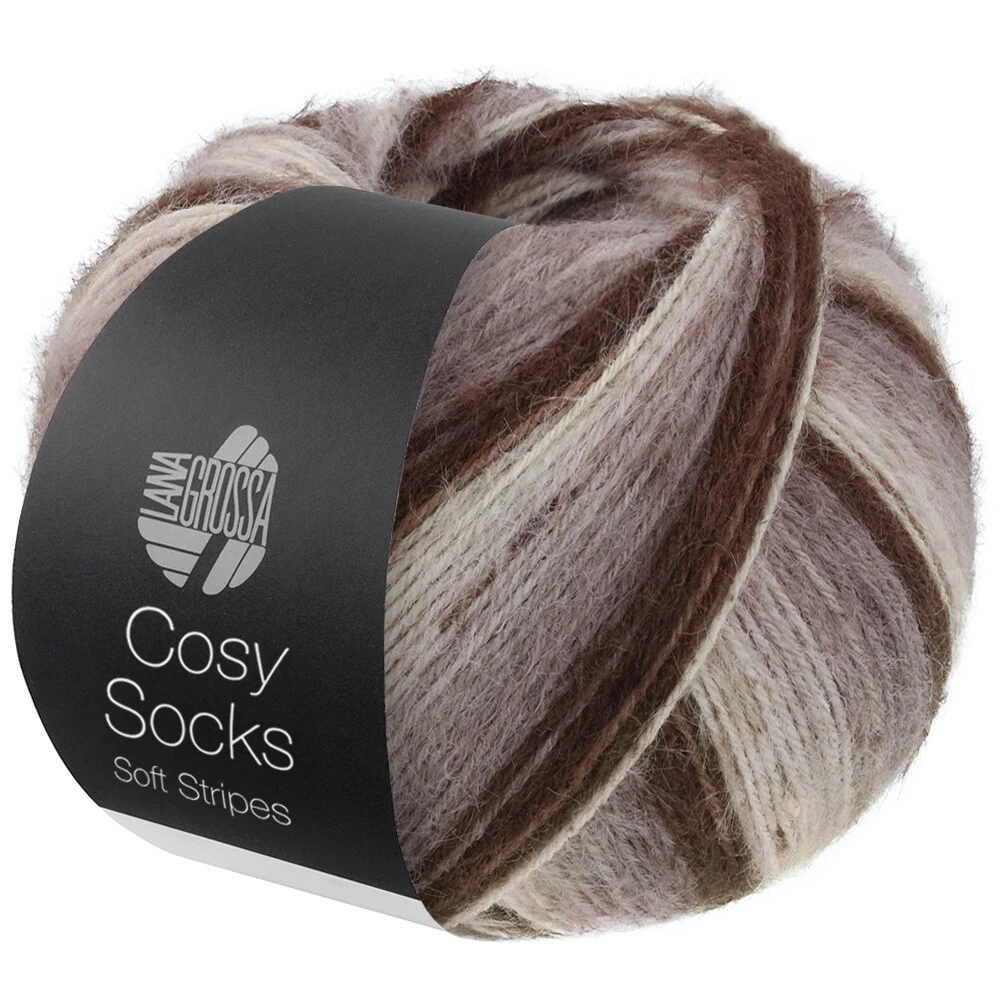 Lana Grossa Cosy Socks Soft Stripes to miękka i wytrzymała włóczka skarpetkowa z klasycznej mieszanki wełny merino i poliamidu. Włóczka posiada delikatne, płynne paski, które tworzą harmonijny efekt kolorystyczny w gotowym wyrobie.