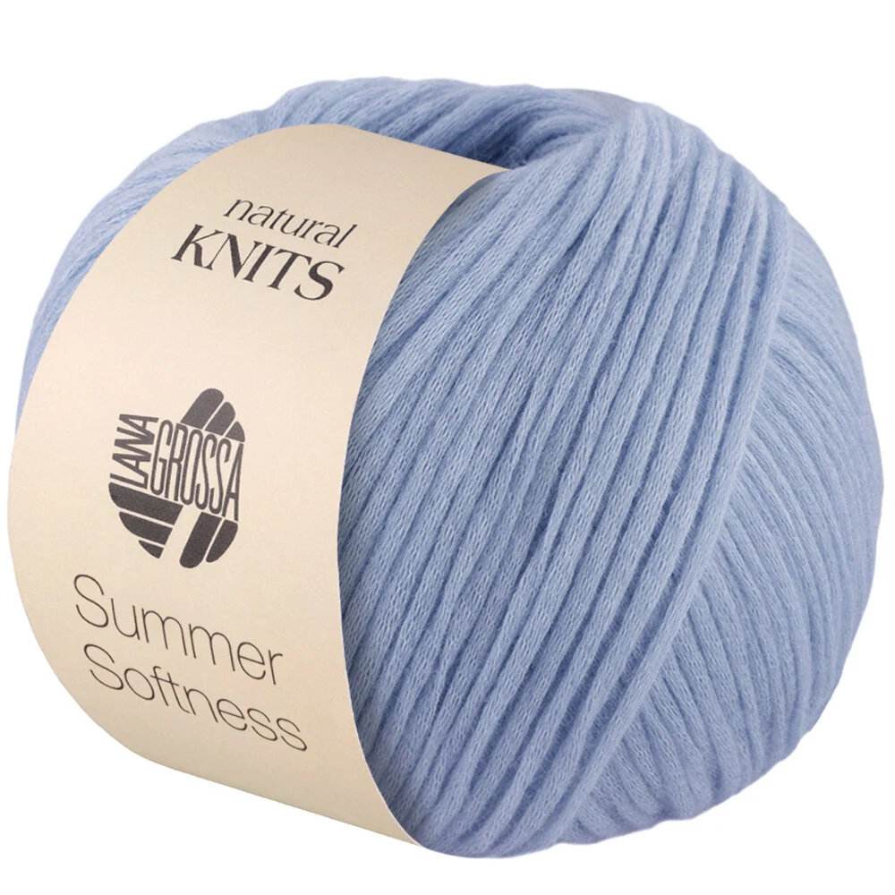 Lana Grossa Summer Softness to lekkie i miękkie włóczka, która łączy naturalne materiały z luksusowym wyglądem. Składająca się w 80% z bawełny i w 20% z wełny merynosowej, posiada unikalną strukturę, w której cienka nić bawełniana otoczona jest przewiewnymi włóknami merynosowymi. Rezultatem jest elegancka, lekka i oddychająca jakość, która jest przyjemna dla skóry.