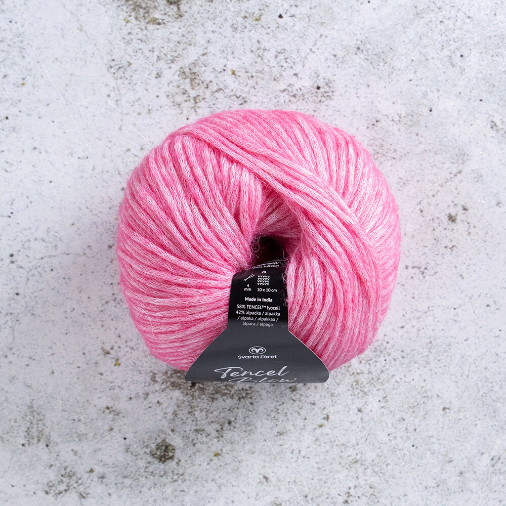 Svarta Fåret Tencel Blow to wyjątkowa włóczka, w której delikatna siateczka z tencelu wypełniona jest miękką wełną z alpaki. Rezultatem jest puszysta i objętościowa włóczka, która jednocześnie jest lekka i luksusowa. Piękne melanżowe kolory powstają naturalnie, ponieważ tencel i alpaka wchłaniają barwnik w różny sposób – nadając włóczce żywą i wyrafinowaną strukturę.