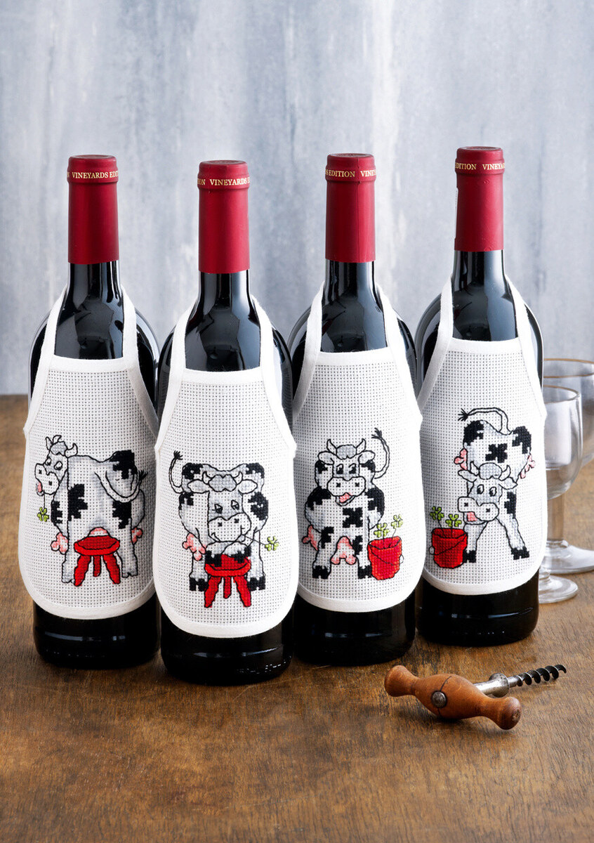 - Kreatywny zestaw do haftu z rustykalną krową i stołkiem.