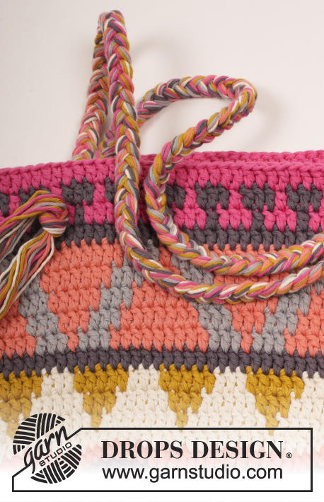 Torba DROPS na szydełku, 2 nitkami włóczki „ DROPS Paris ” z kolorowym wzorem.