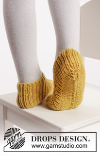 Kapcie DROPS na drutach, z włóczki „ DROPS Merino Extra Fine ” ze ściągaczem. Rozmiar 20 - 34.