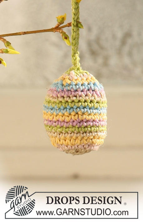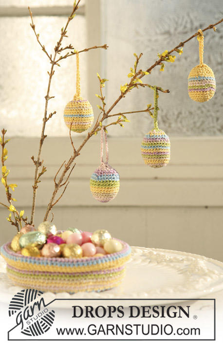 Jajko wielkanocne DROPS na szydełku i koszyczek wielkanocny DROPS na szydełku, z włóczek DROPS Muskat i DROPS Glitter .