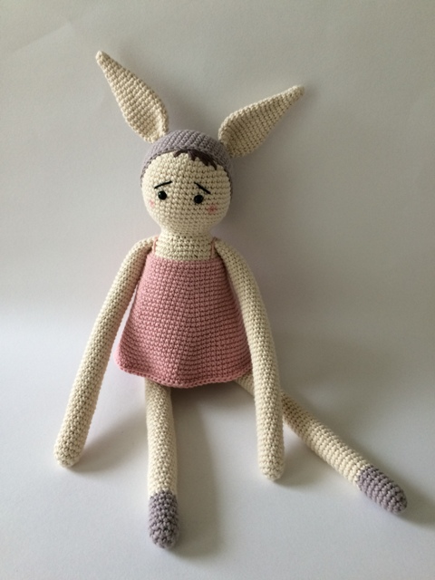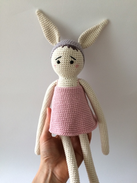 Produkt: Szczegółowy przepis na szydełku dla królika Angeliki. Królik Angelika ma ok. 35 cm długości.