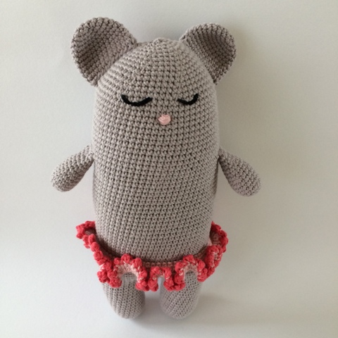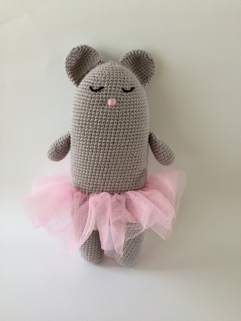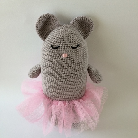Produkt: Szczegółowy wykrój szydełkowy na myszce baletowej Mimi, gdzie znajduje się zarówno opis jak uszyć tiulową spódniczkę jak i przepis na szydełkową spódniczkę.