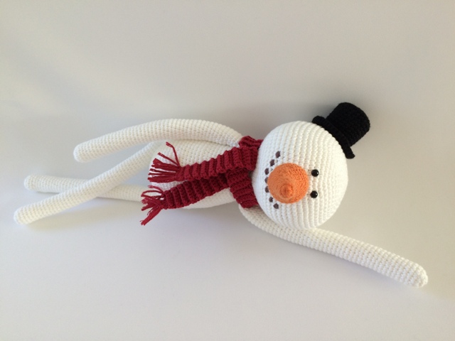 Produkt: Szczegółowy przepis na szydełku dla bałwana Hr. Mróz. Pan. Mróz wynosi ok. 40 cm długości.